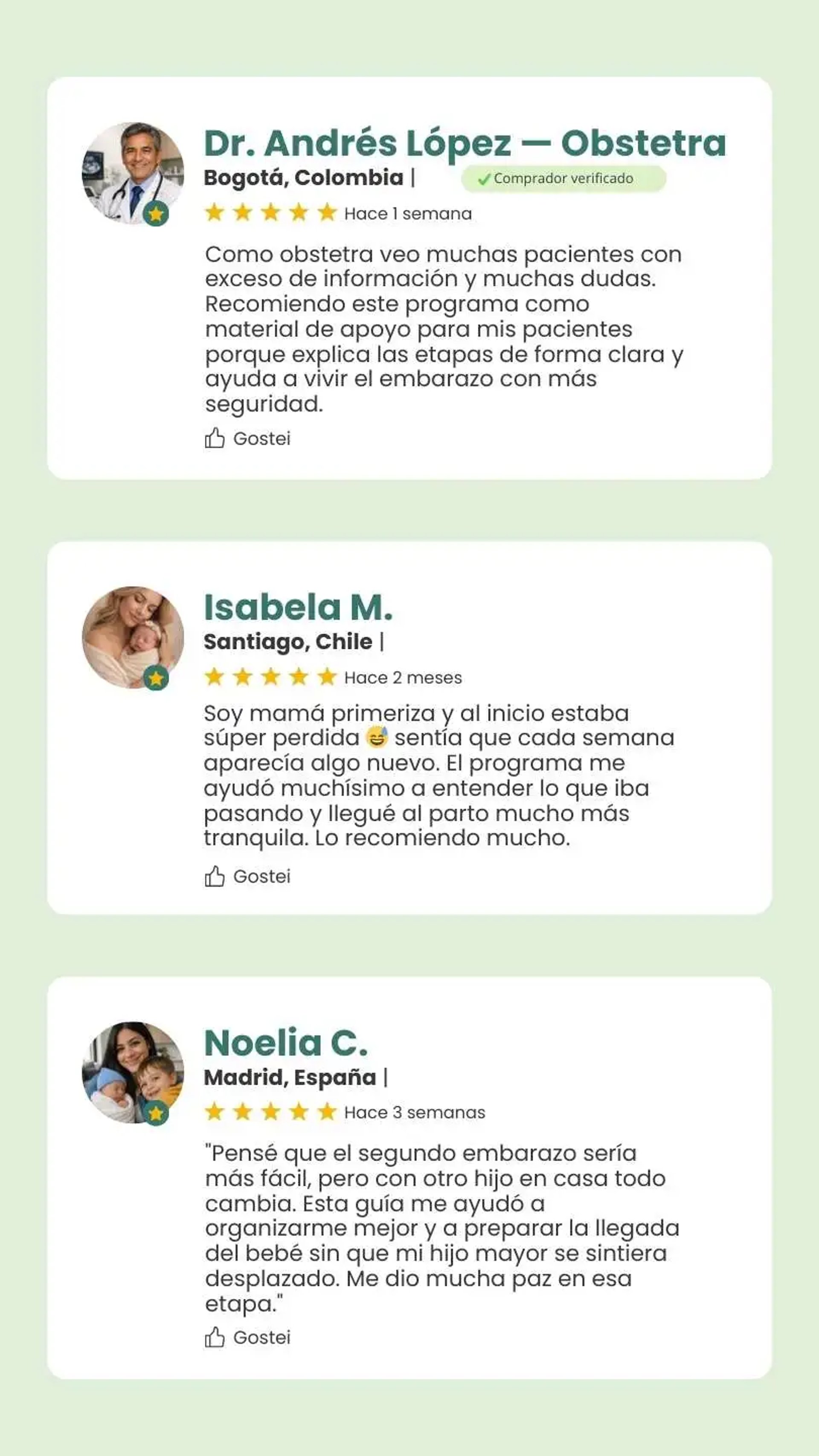 Testimonios reales de mujeres que encontraron en este programa y lo utilizan como apoyo durante el embarazo y los primeros meses del bebé.